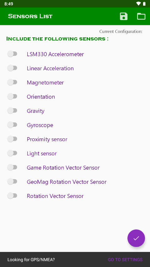 3.您可以根据自己的需要自定义手机上的传感器列表,实现数据流。