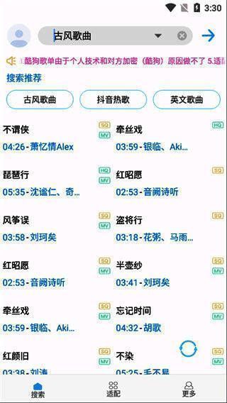支持多种音质选择,无广告,支持抖音、古风和英文歌单推荐。
