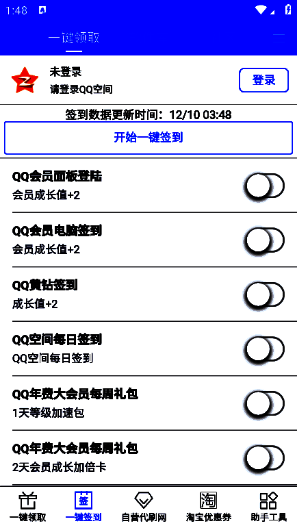 3、可以一键批量签到,包括QQ会员、年费福利等。