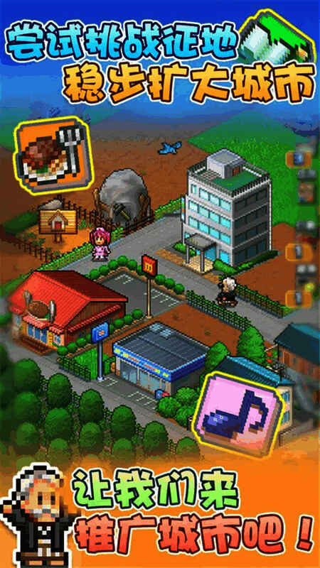 箱庭都市物语是一款题材经典但玩法新颖的高自由模拟建造类经营手游,精美像素风格设计,人物Q萌卡通、场景写实、以及拥有着丰富的玩法、独特的城市建筑系统,五彩缤纷的色彩勾芡,不仅在视觉上给予耳目一新的感觉致力于给大家带来最真实的游戏体验。支持大家与好友同台与众多城市比赛,并在限定时间内一起合作,不停的扩张土地、得到设施、介绍居民转职等。