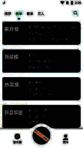 1、打开软件在首页可以看到多种风格的歌单及榜单推荐
