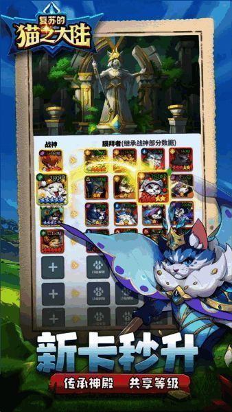 1、六个阵营中的近100名猫英雄共享升级机制,没有方向卡限制。