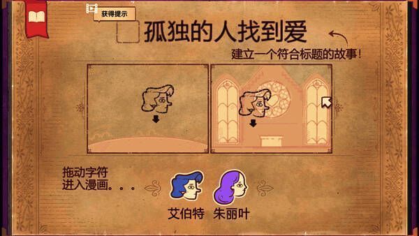 3、进入游戏如图,玩家需拖动字符进入漫画,然后建立一个符合标题的故事;