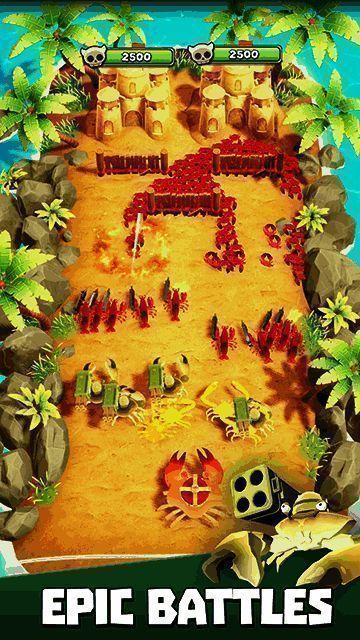 螃蟹之王入侵是一款以螃蟹为题材的即时战略养成游戏,玩家将担任海洋中的螃蟹统帅,带领属于自己的螃蟹大军进行战斗。随着一次次战斗的胜利,收获大量的资源,从而对螃蟹进行升级进化,进而增加实力,随着实力的增加,还会解锁更多的岛屿,你将带领你的大军,在沙漠、冰岛、丛林等多种类型的岛屿中进行战斗。游戏中还具备多种螃蟹兵种,只有合理的搭配后才能够使游戏的胜利更容易获取。
