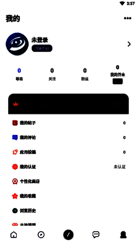 2、在个人空间点击上方的【未登录】进入到登录账号的界面;