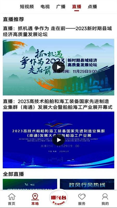 掌上南通内置电视频道同步直播、广播电台收听、电视电影点播等功能,覆盖南通本地多个频道。无论是在通勤途中还是居家休闲,用户都能随时随地观看喜爱的节目或了解政策动态,真正实现“移动看世界”的便捷体验。
