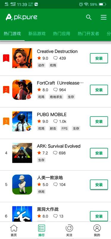 3、游戏排名,根据实际下载量对游戏进行排名,向你推荐热门游戏。