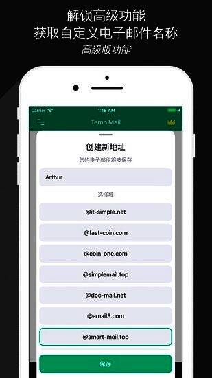3、在线创建多个临时电子邮件地址,这些地址支持各种常见的电子邮件后缀,非常方便。