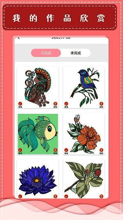 游戏内提供了丰富多样的填色图案,涵盖自然风景、可爱动物、经典人物等多个主题类型,无论是喜欢简约风格还是热衷于复杂细节的玩家,都能在这里找到心仪的图案进行创作。