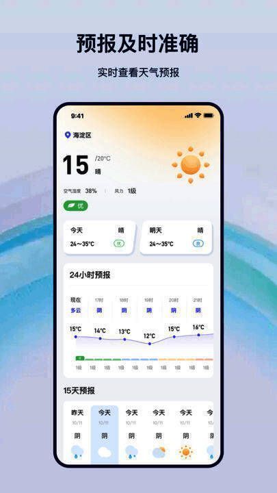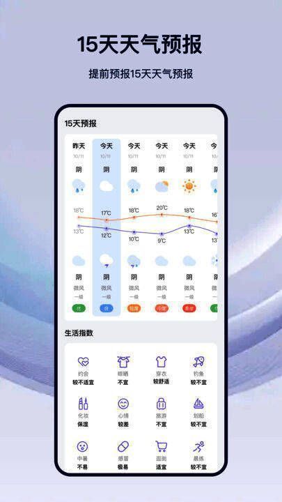该软件提供多维度的天气服务功能,包括实时天气信息更新,让用户随时掌握当下气候状况;未来数日的天气预报功能,帮助用户合理安排行程;天气异常警报推送机制,在极端天气来临前及时通知用户做好准备;同时支持多地点同步查询,满足用户对不同城市天气的关注需求。