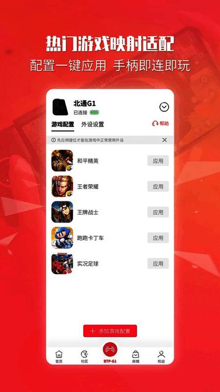 通过蓝牙或USB接口,玩家可实现对北通系列手柄的一键连接,无需复杂设置即可立即进入游戏。系统实时显示手柄电量状态,便于及时充电维护,保障游戏体验的连续性。