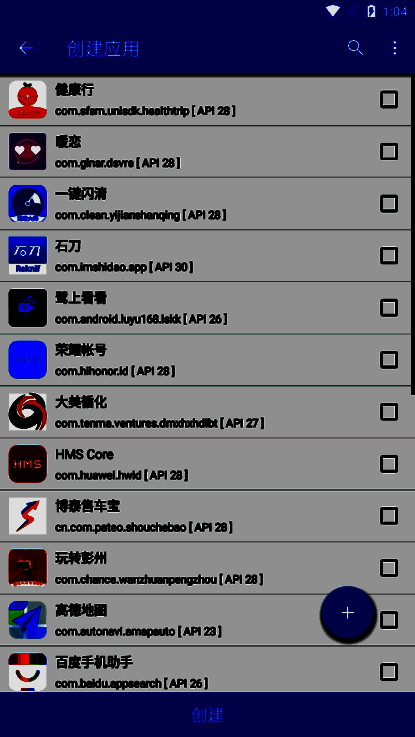 1、点击右下角浮动按钮,然后选择“创建应用”