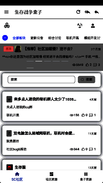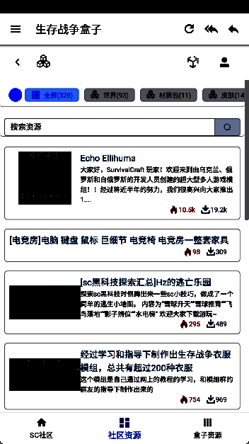 这是专门为喜欢玩生存战争的玩家设计的社区资源论坛软件,也叫sc盒子网。玩家可以找到与生存战相关的各种资源,如游戏、地图、模块、材料、皮肤和家具包等。这些资源都可以免费下载,让大家更好的体验游戏。同时,软件还提供了详细的资源教程,帮助每个玩家了解如何安装模块地图等资源,即使是小白玩家也能轻松掌握。