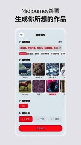 midjourney官网手机版APP是主打智能绘画的软件工具,轻松满足用户的不同风格创作。为用户提供了丰富的绘画工具和功能,为用户提供了大量的经典笔刷,支持用户创建新的图层,支持多种文件格式,是一款非常简单易用的绘画软件,用户可以轻松作画。只要输入你想到的文字,就可以通过人工智能产生相应的图片,只需要一分钟左右。在质量、准确性和表现力方面,它都有了显著的提高。