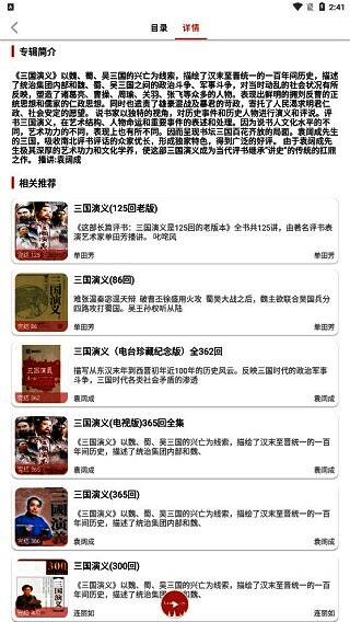2.如果当前有你感兴趣的小说或者其他文学作品,直接点击便可进入,进入里面后,首先便是目录,在这里你可以选集播放。