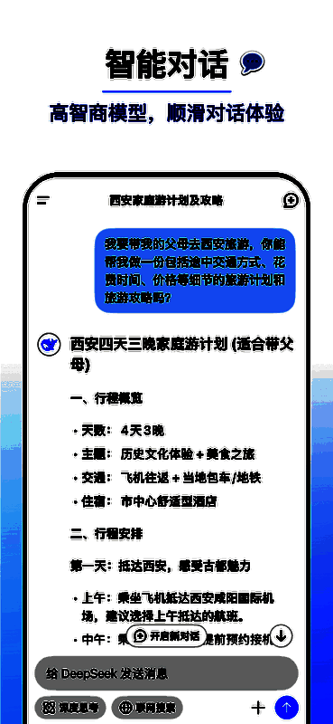 deepseekapp官网下载正版是一款高度智能化、人性化的AI会话软件,适用于学生、白领、自媒体等群体。它可以回答各种问题,翻译文档,提供您想要的信息,等等。功能丰富,操作简单,可以节省我们的时间和精力。Deepseek软件也没有太多复杂的设计,给你带来智能的操作体验。Deepseek解决各种理科难题,提供解题思路和步骤,有需要的小伙伴现在就来下载吧!