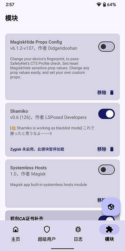 方法2:用MT管理器删除data/adb文件夹,然后立马使用当前magisk的模块功能,本地安装刷入delta.zip卡刷包,重启手机后安装对应APP即可。