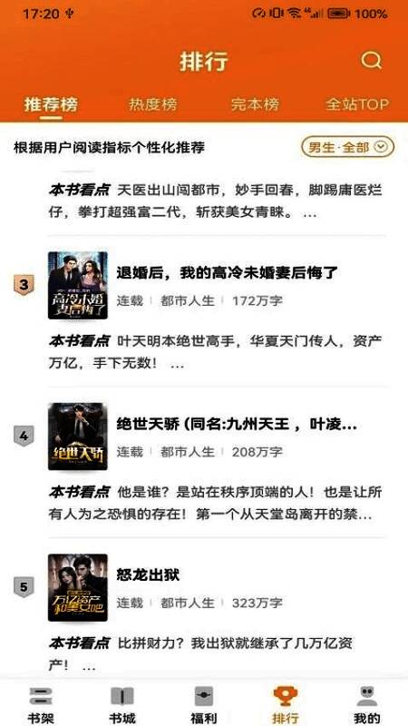 4、有各种类型的小说列表,让用户可以快速找到热门小说,满足用户的所有阅读需求,让用户不再缺书。