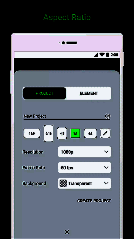 2、然后我们选择创建一个项目,设置项目名称、宽高比例、分辨率、帧速率、背景颜色。