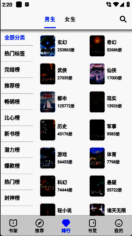 2、进入首页之后,汇集了海量的小说资源,男生女生的都有。