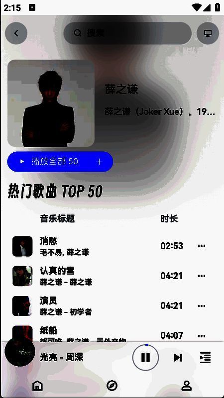 3、小众的手机音乐播放器,拥有多个音乐平台的音乐资源,直接在线搜索,点击播放直接听歌。