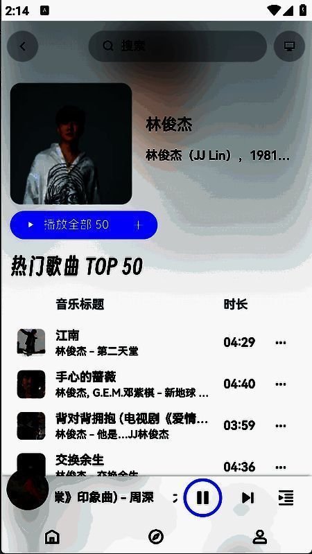 4、通过搜索功能进行快速的查找,为用户带来了便利,只需要输入音乐的关键词即可。
