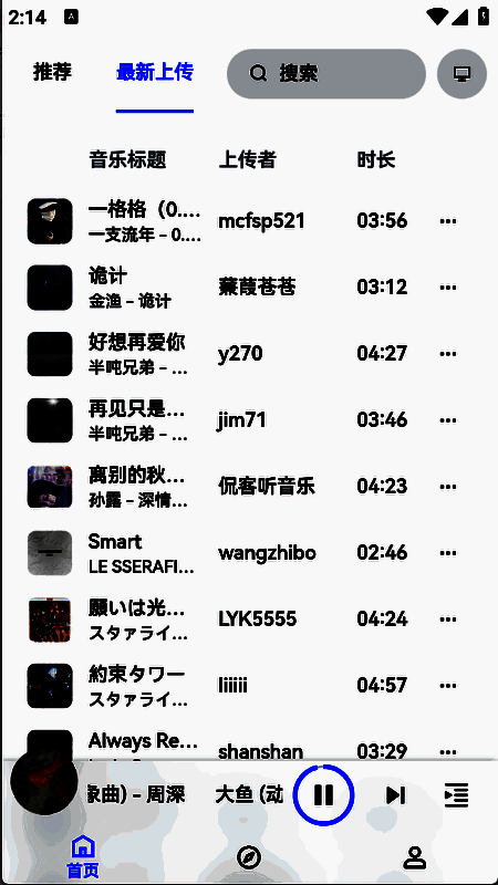4、界面简洁直观,各种各样的优质音乐呈现在你的眼前,点击就能够直接播放,没有任何的限制。