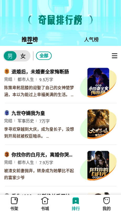 《奇鼠免费小说官方版》是一款专为喜欢阅读小说的用户设计打造的新颖阅读软件,它为用户提供了大量的小说资源,包括都市言情、奇幻、历史空间、童话等各种类型,让用户随时随地享受阅读的乐趣,个性化推荐功能非常的精准,可以向用户推荐他们感兴趣的作品,阅读界面简洁明了,用户可以根据自己的喜好进行自定义设置,软件还为用户提供了离线阅读、书架管理等实用功能,用户可以随时查看自己的阅读进度和喜爱的小说。