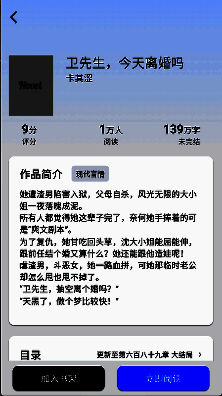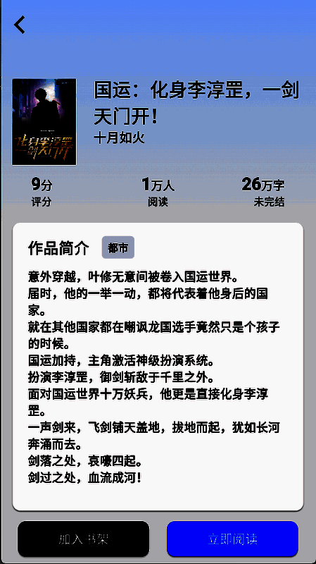 1、点开喜欢的小说进入详情页,点击“加入书架”。