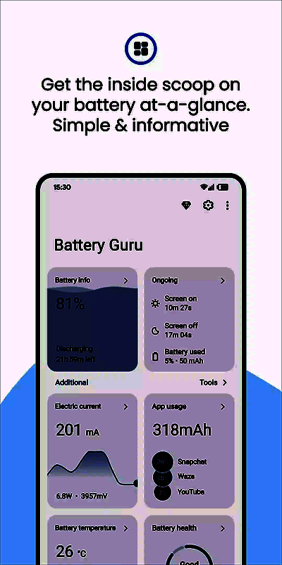 batteryguru 中文版官网专门用于手机电池管理和优化的工具,它可以帮助用户延长手机电池的使用寿命,提供各种实用的电池管理功能,可以根据用户的手机使用习惯和电池状况,智能调整手机设置,延长电池使用时间。而且软件的智能电池管理功能可以根据用户的手机使用习惯和电池状况,智能调整手机设置,软件的智能电池管理功能可以有效延长手机电池的使用寿命,让用户更清晰地了解自己的手机电池状况。