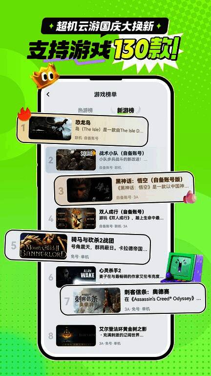 超机云游旧版本是一款受欢迎的云游戏畅玩助手,可以轻松为用户许多热门游戏资源和类型,方便用户自由选择查看,轻松在里面找到很多高品质的游戏,给用户带来全面的游戏体验和服务,还内置简单易用的界面,随时让用户自由管理喜欢的游戏,轻松体验丰富的游戏玩法,能完全满足用户的使用需求,还会实时更新各种游戏资讯,新闻,攻略等可以自由查看,轻松进阶为游戏大神,还拥有多项辅助功能的加入,轻松享受畅快的游戏之旅。