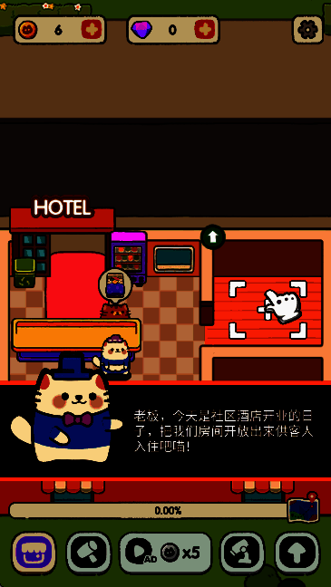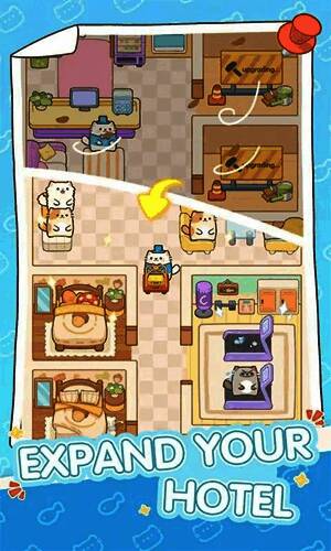 3.您可以通过提供优质服务来赚取金币和声望,不断发展和扩大您的酒店,吸引更多的迷你猫,宠物和客人。