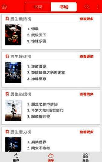 3、用户可以通过分类、搜索、排名等方式找到自己喜欢的小说书籍,自由在线看书阅读。