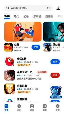 推荐、应用、游戏、排行多种方式寻找你最喜欢的app。