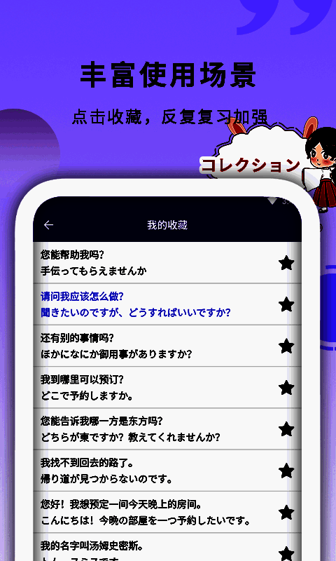 1.提供了详细的日语语法解释和丰富的示例,帮助用户理解日语语法规则,自由学习更多的日语知识;