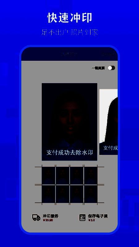 基于AI技术的智能检测系统,可精准识别面部位置与比例,自动调整构图,确保照片合规;此外,提供一键导出和打印功能,方便用户将照片保存至相册或直接打印使用。