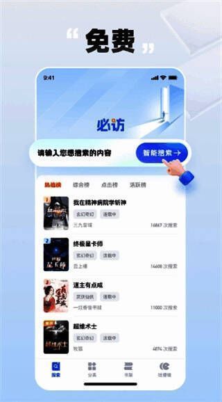 用户可以通过智能搜索工具快速查找心仪的小说资源,只需输入书名、作者或关键词,即可一键获取相关作品。此外,《必访小说》还根据小说类型进行细致分类,方便读者按兴趣浏览。