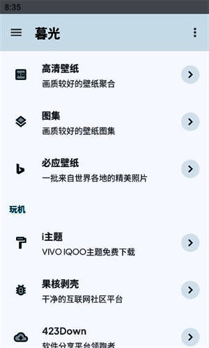 2.壁纸下载,内置多种分类,包括头像、壁纸、图库、Bing壁纸,免费下载。