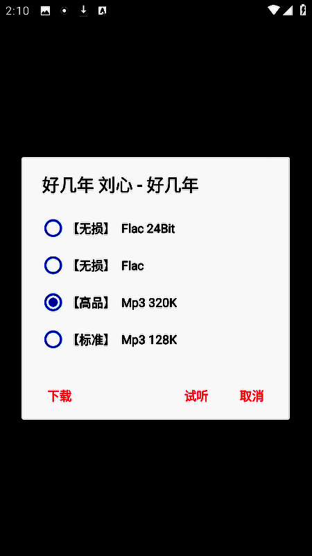 5、这时候界面上会出现四种音质,自定义选择一种,可以进行试听或者下载。