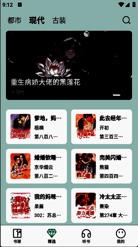 2、进入首页之后,“精选”页面,包含了很多的小说资源。