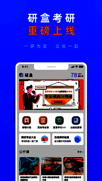 研盒考研是一款受欢迎的考研必备软件,可以轻松为用户提供丰富的考研学习内容和资源,随时让用户自由选择查看,轻松帮助用户快速掌握更多的考研知识,给用户带来全面的考研学习服务,还拥有专业的考研老师,可以让用户更快的学习各种考研知识,自由帮助用户提升考研考试成绩,能完全满足用户的使用需求,还会实时更新各种考研资讯,时间等,随时让用户轻松了解,还拥有全面的学习计划和方式,随时随地自由学习。