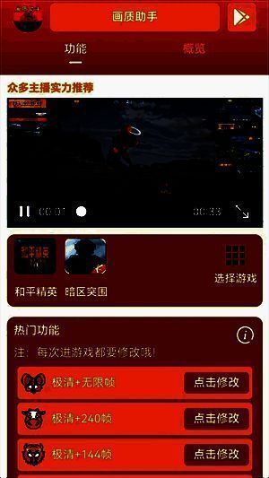 主播同款画质助手和平精英是一款定制图像质量修改器。主播同款画质助手和平精英该软件功能广泛,易于操作,具有一键解锁帧限制和启用全画面质量等功能,这不仅使低端手机更流畅,而且使高端手机的画面质量更清晰。同时,该软件可以智能匹配和平精英的所有版本,用途广泛,可用于所有手机型号;游戏新手,不要担心任何不清楚的地方,主页为您提供完整的初学者教程,如果你需要,不要错过哦!