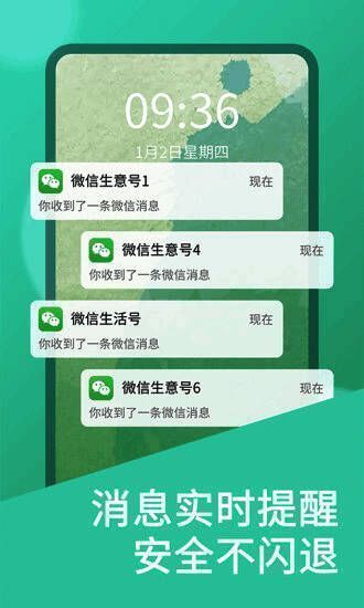 一部手机上两个账号可同时在线,不用频繁切换账号,提高生活和工作效率。