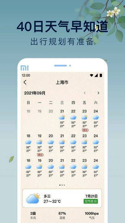 2、雨日天气 最新版软件可以看到的天气预报非常丰富,并在线实时更新。