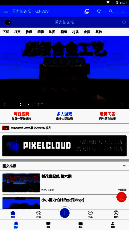 1、在本站下载并打开苦力怕论坛app,可以搜索自己需要获取的模块,也可以在首页找到自己感兴趣的模块。