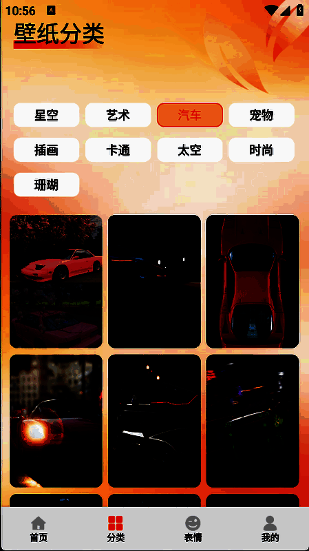 3、分类页面将壁纸进行了详细的归类,包含了艺术、卡通以及宠物等类型。