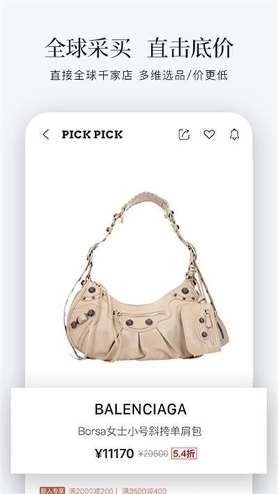 PICKPICK手机版是一款非常好用的在线购物软件,拥有全面且多样的商品分类可以轻松查看,随时让用户自由购买各种商品,还具有简洁的界面设计,用户可以直接查看详细的商品信息和介绍,方便用户自由在里面购买各种正品商品,随时享受优惠的购物服务,同时还与国际大品牌进行合作,轻松在线购物,给用户带来便携的购物过程,还具有智能搜索方式,可以直接输入商品名称来查找各种各样的商品资源,有兴趣的用户欢迎来下载软件吧。