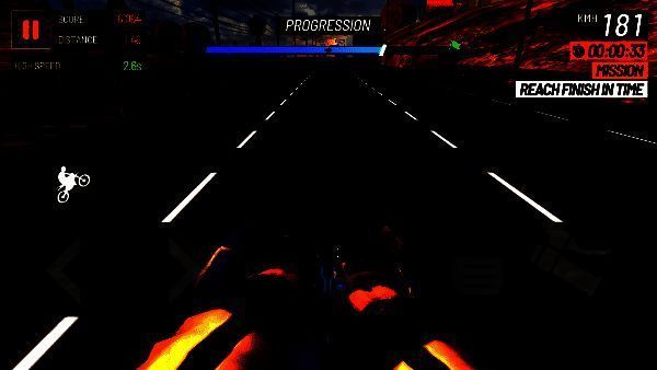1、玩家通过触摸屏控制摩托车的加速、刹车和转向,在城市街道上驾驶,避免碰撞和超速;
