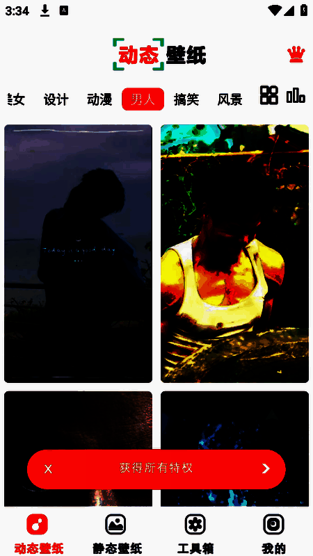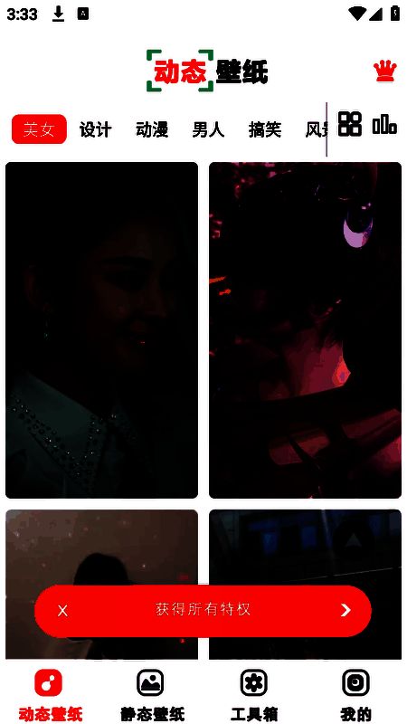 2、底部栏中有很多的壁纸资源,包括动态壁纸个静态壁纸,各种风格类型全部都有。