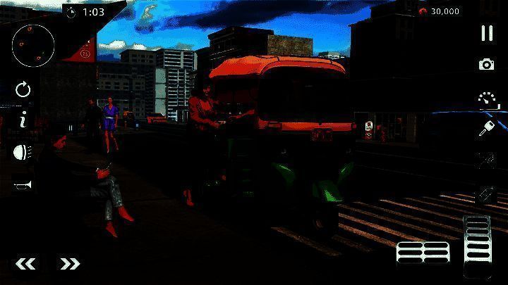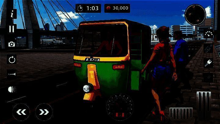 1、驾驶控制:玩家通过屏幕上的虚拟按钮来控制人力车的前进、刹车和转向,需要灵活操作以避开交通和完成任务;
